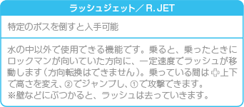 ラッシュはロックマンの相棒である犬型ロボットで、3種類の機能を持っています。 |