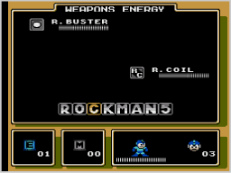 | ロックバスター以外の武器は、武器エネルギーゲージを消費して使用します。ボスの苦手な武器がわかっている場合は、道中でその武器を使わないようにして、武器エネルギーゲージを温存しておくことをオススメします。 | ![]() |
