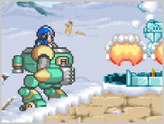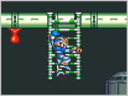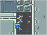 アクション画面では「ライドアーマー」と呼ばれる乗り物が見つかることがあり、「ライドアーマー」に触れると乗ることができます。ライドアーマーに乗ると、ロックマンXはダメージを受けなくなり、強力なパンチ攻撃ができるようになります。搭乗時にはパンチ以外にも、通常アクションと同じ操作で「移動」「ジャンプ」「ダッシュ」ができます。 ライドアーマーは一定のダメージを受けると爆発してなくなります。また、 |