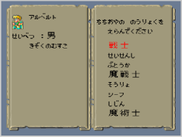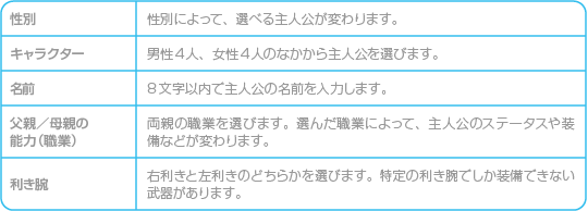 ゲームを最初からプレイします。以下の項目を順番に設定して、主人公を作成してください。