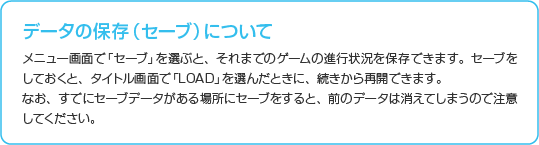 セーブしていたデータをロードして(読み込んで)、ゲームを続きから再開できます。