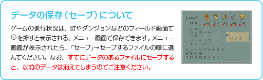 続きからゲームをプレイします。4つのセーブデータから、いずれかを選んでください。 |