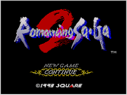 Wii本体の電源を入れたら、Wiiメニュー画面で『ロマンシング サ・ガ2』のチャンネルを選んでください。オープニングが始まり、いずれかのボタンを押すとタイトル画面に移ります。 |