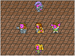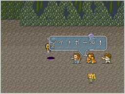 フィールド画面で敵に触れると、戦闘画面になります。ダッシュ中に敵に触れたり、背後から敵に接触されると、陣形が強制的に「フリーファイト」になるので注意してください。 |
