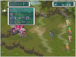 敵と戦うときに表示される画面です。敵を倒すとフィールド画面に戻ります。 |