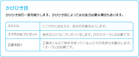 競り相手や物件などにかけひきをして、買収劇が自分の会社に有利になるようにします。かけひき技を選んで、 ※かけひき技を覚えていない場合はコマンドが表示されません。