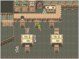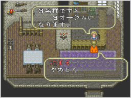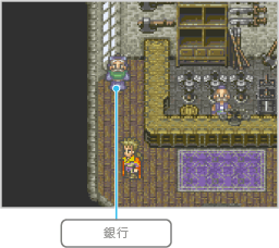 所持金が10000オーラムを超えると、それ以降に手に入れたお金は自動的に銀行に預けられます。右のような銀行の人に話しかけると、預けたお金を引き出すことができます。 |