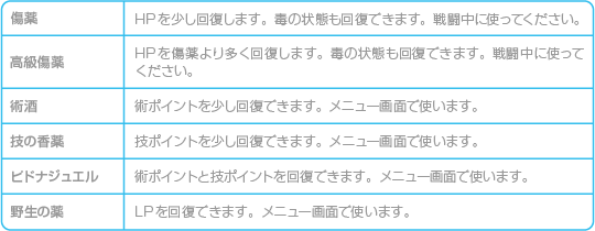 冒険に役立つアイテムの一部を紹介します。