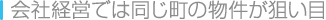 | 同じ町の物件をたくさん所有すると、経営者への信頼がアップし、物件の生産力も増えます。決算のときの収入がアップするので、経営を始めたばかりのときは同じ町の物件を狙ってみてください。 |