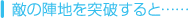 戦場の敵側のエリアを兵士が突破すると、敵の軍隊のモラルが下がり、味方の軍隊のモラルが上がります。「上翼突破の陣」や「下翼突破の陣」で敵側のエリアになだれ込むと、敵のモラルを激減させることができるので、勝利する確率も高くなります。 |