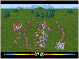 兵士のモラルが低い状態では戦闘は大幅に不利になってしまいます。モラルは全軍後退しているときや、兵士が2列の陣形で後列にいるときにどんどん回復していきます。モラルが低いときには前列の兵士をいったん後列に下げて、モラルが回復したあとに前列に戻して攻撃させるなどすると、兵士のモラルが高いまま、戦闘を有利に進めることができます。 ただし、兵士のモラルは回復しても、生命力は回復しません。戦いが長引くと、兵士の生命力が落ちていってしまうので注意してください。 |