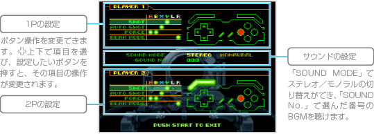 タイトル画面で「OPTION」を選ぶと、以下のオプションメニューが選択できます。