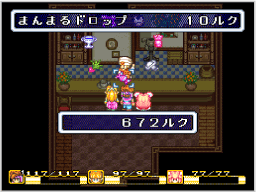 アイテムや防具を売買できます。商品のリングが表示されるので、 なお、防具を選ぶと、装備できるキャラクターがリングの中央に表示されます。 |
