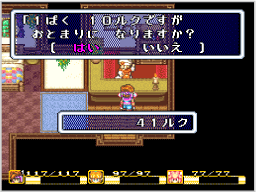 宿泊すると、HPとMP、戦闘不能も含めたすべてのステータス異常が回復します。また、セーブをすることもできます。 |