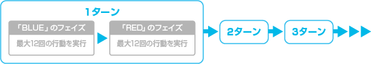 「BLUE(青)」と「RED(赤)」の2つの軍に分かれ、機体(ユニット)を率いて戦います。 |