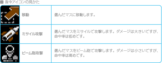※指令アイコンのいずれかを実行すると、戦艦の行動は終了となります。登載中のユニットの出撃は可能です。