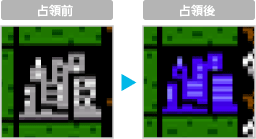 敵ユニットがいない都市や補給基地に移動すると(または、そこにいる敵ユニットを倒すと)、占領することができます。占領した都市や補給基地は自軍の色に変わり、さらにターンごとの収入(IC)が増えます。