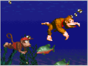 左右で移動します。なお、水の中では基本的に敵を攻撃できません。タイミングよく敵をよけながら進みましょう。