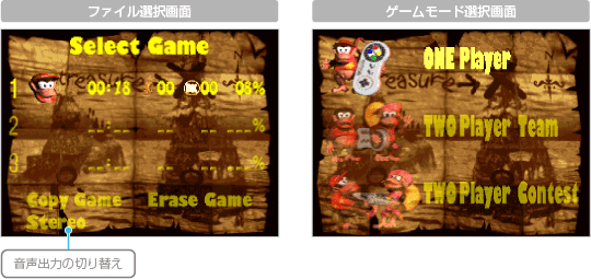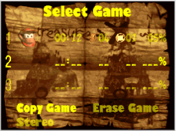 ファイル選択画面で「Copy Game」を選ぶとほかのファイルにデータをコピーすることができ、「Erase Game」を選ぶとデータを消すことができます。なお、一度消したデータは元に戻らないので注意してください。