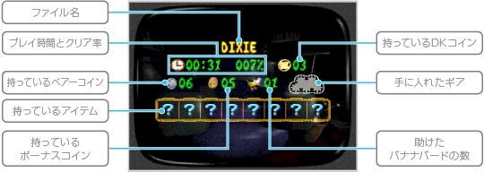 Wii本体の電源を入れたら、Wiiメニュー画面で『スーパードンキーコング3 謎のクレミス島』のチャンネルを選びましょう。タイトル画面が表示されます。 |
