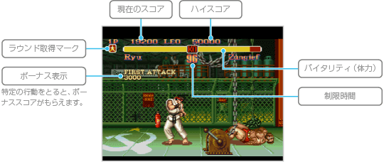 キャラクターを選んだ直後や、対戦直前に ※「CPS FIGHTER(カプコン パワースティックファイター)」はバーチャルコンソール版では対応しておりません。