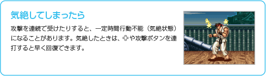 キャラクターごとに決められたコマンドを入力すると、さまざまな必殺技を出すことができます。攻撃ボタンの弱中強によって必殺技の性能が変化するので、試してみましょう。