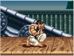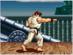 で強パンチが出せます。弱→中→強の順に威力が増しますが、その分スキも大きくなるので、出しどころに注意しましょう。また、ジャンプ中やしゃがみ中に各パンチボタンを押すと、立ち状態とは異なる技を出すことができます。