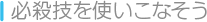 各キャラクターが使える必殺技は、どれも威力のある技ばかりです。コマンドが難しいものもありますが、狙ったときに使えるようになれば、強力な武器になります。 |