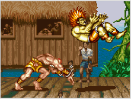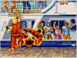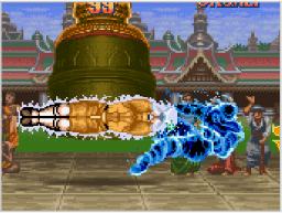 通常のパンチやキックが相手にヒットしている間に必殺技のコマンドをすばやく入力すると、続けて必殺技が出せる場合があります。 これはキャンセルと呼ばれ、効率よくダメージを与えるために欠かせないテクニックです。ぜひマスターしましょう。 |