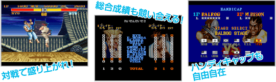 最大のライバルはコンピュータではなく、ほかのプレイヤー。友だち同士で対戦すれば、ゲームがより一層おもしろくなります。また、本作では同じキャラクター同士でも対戦できます。リュウ対リュウ、サガット対サガット……夢の対戦を楽しんでみましょう。 ![]() |