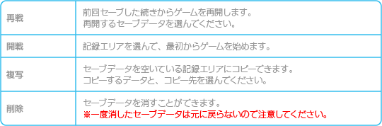 タイトル画面で ※初めて遊ぶときは「開戦」のみ選ぶことができます。 |