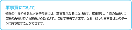 最初に自軍の首都や工場などを選び、軍事費を消費して部隊を生産してください。生産した部隊は、次のターンから行動させることができます。