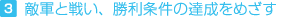 | 敵軍の部隊と戦ったり、施設を占領することで、戦況が変化していきます。これらの手順を繰り返して、勝利条件の達成をめざしましょう。 | ![]() |