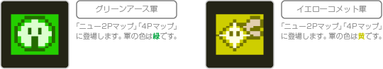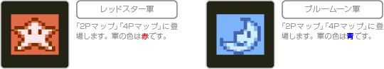 軍は全部で4種類あり、モードによって登場する軍が異なります。なお、戦場画面の部隊や占領した施設の色は、それぞれの軍に対応した色になります。 ![]() ![]() |