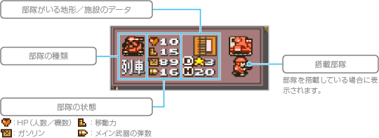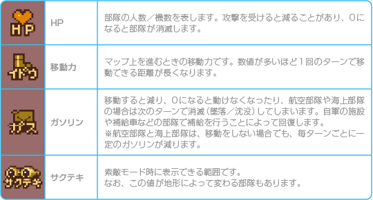 を押すと、能力や部隊に対する攻撃力など、詳しい情報が表示されます。なお、