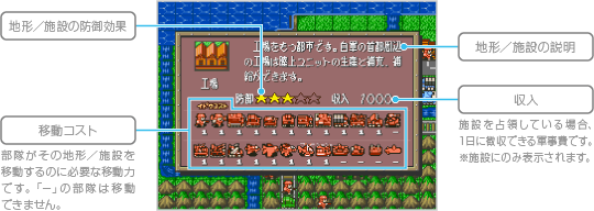 を押すと、移動コストや防御効果など、詳しい情報が表示されます。