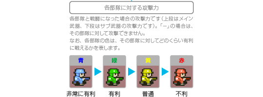※部隊によっては、メイン武器やサブ武器を持っていない場合もあります。