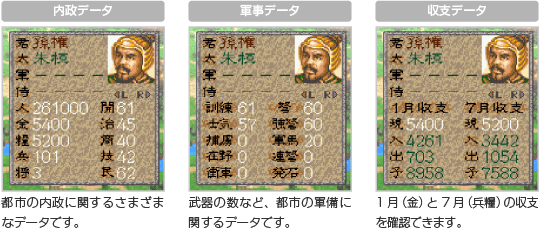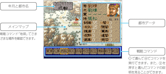 戦略画面はゲームの中心となる画面で、選んだ都市の詳しい情報が表示されます。