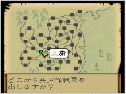 攻撃先に隣接する自国の都市があれば、そこから同時に攻撃を行う共同軍を出撃させる命令ができます。参加させる部隊を編成しましょう。 ※共同軍の部隊は最大3つ、武将は5人まで出陣できます。