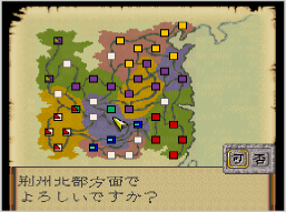 ライバルの動向がわからなければ、効果的な戦略を立てることはできません。戦略コマンド「密偵」などを活用して、積極的に周囲の国の情報を集めましょう。また、隣接する都市に「計略」の「埋伏」で武将を送り込んでおけば、相手に攻め込まれたときの備えにもなります。これらで得た情報を活用して、戦略の方針を考えてください。 |