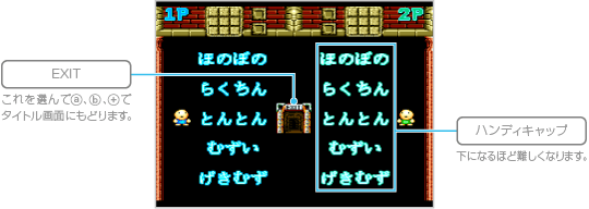 ステージを順番にクリアしていくゲームモードで、途中参加することによって2人プレイもできます。