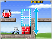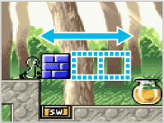 「青」を注入すると、左右に動くブロックになります。色を注入した場所から2ブロック分左または右に動き、元の位置に戻る動きを繰り返します。なお、ブロックは色を注入したときに“はっくん”が向いている方向に動きます。 |