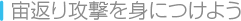 を押すと、真下や後ろなど、通常では攻撃できない方向を攻撃できます。ボタンを押すタイミングをつかんで、宙返り攻撃を身につけましょう。