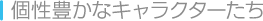 主人公のキュウリ戦士、ヒロインのトマト姫を始め、この国に暮らす「ひと」たち(キャラクター)は、そのほとんどが野菜や果物です。それぞれ個性的な外見と、特徴的な性格を持ち、物語を盛り上げていきます。 |