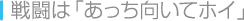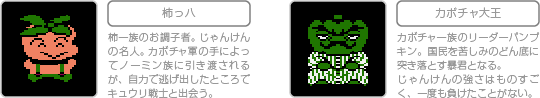 このゲームの大きな特徴の1つは、敵との戦闘がすべて「あっち向いてホイ」であることです。カボチャ大王の手下たちはもちろん、大王本人との対決も「あっち向いてホイ」で行います。戦いかたはカンタン。じゃんけんをしたあと、向く方向を指定するだけです。でも、カボチャ大王はサラダ国の「じゃんけん大会」優勝者なので、なかなか手強いかもしれません……。 |