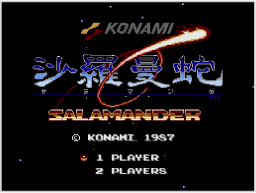 Wii本体の電源を入れたら、Wiiメニュー画面で『沙羅曼蛇』のチャンネルを選びましょう。 タイトル画面が表示されます。 |
