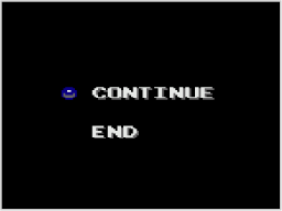 残り数が00の状態でミスをするとゲームオーバーです。1Pと2Pともにゲームオーバーになると右の画面が表示されるので、現在のステージから再開するときは「CONTINUE」、タイトル画面にもどるときは「END」を選んでください。「CONTINUE」は3回まで選ぶことができます。