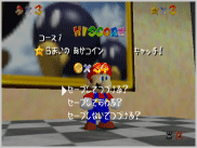 このゲームではパワースターやカギを取るとセーブ画面が表示され、これまでの状況を保存できます。 1度取ったパワースターは半透明のカゲで表示されます。これを取るとセーブ画面に移り、進行状況が保存できます。 |