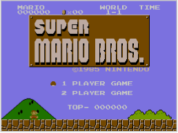 Wii本体の電源を入れたら、Wiiメニュー画面で『スーパーマリオブラザーズ』のチャンネルを選びましょう。タイトル画面が表示されます。 |