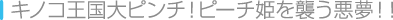 | 本作は『スーパーマリオブラザーズ』のパラレルワールドを舞台にした、マリオとルイージの新たな冒険のお話です。 大ガメクッパの一族に襲われたキノコ王国。魔力によって岩やレンガに変えられてしまったキノコ一族を元に戻すことができるのは、キノコ王国のお姫さま、ピーチ姫だけです。今は大魔王クッパの手中にある彼女を助け出し、キノコ王国を甦らせるためにマリオが立ち上がります。 ![]() |